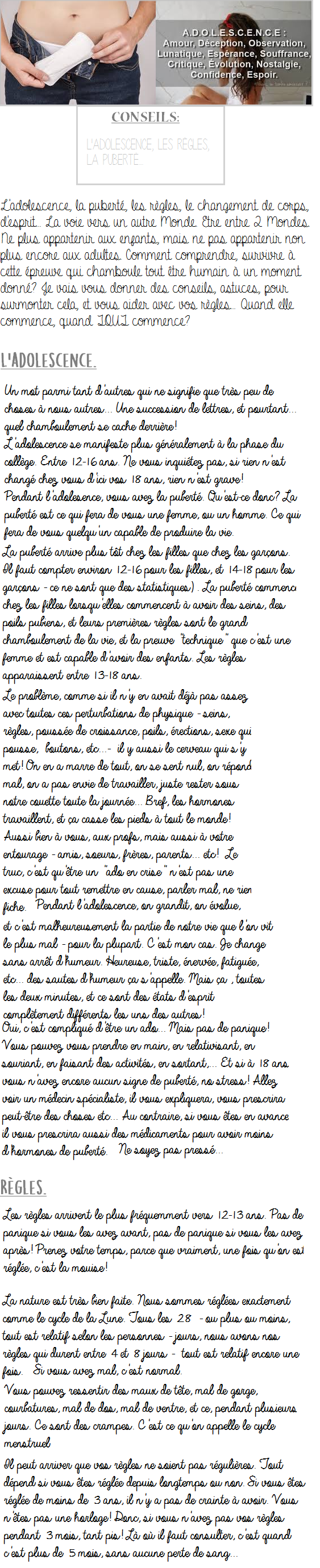 Adolescence,Règles, Puberté.